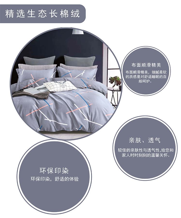 床单:230x230cm 被套:200x230cm 枕套:50x80cm 【面 料】长棉绒(聚酯纤维) 产品特点: 1.精选生态长棉绒面料,亲肤透气,细腻柔软; 2.活性印染,不添加劣质涂料,面料柔软,花型立体感强; 3.做工精细,足尺足码。